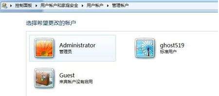 点击新创建的ghost519账号,我们还可以为新创建账户设置登录密码,删除帐号等其他操作,到这里第一种添加Win7账户的方法就完成了