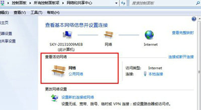 2、接着在打开“控制面板/网络和共享中心”,点击“查看活动网络”下方的图标,将网络属性设置为家庭。
