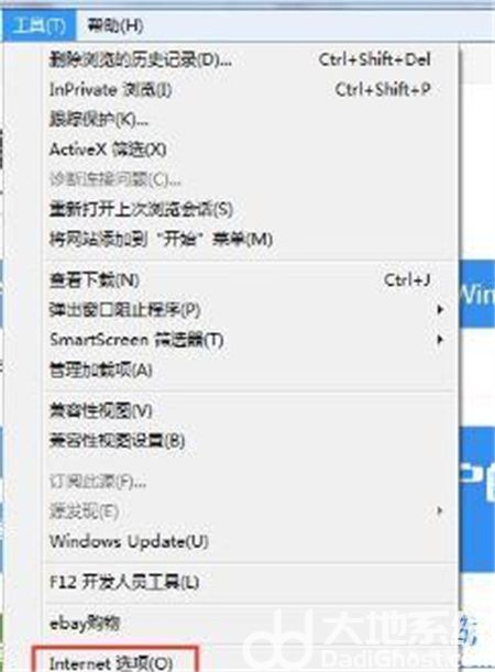 2、以上的步骤完成后,大家就需要在工具菜单选项下来打开Internet选项了。