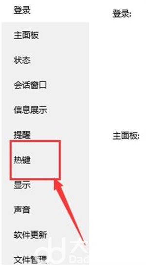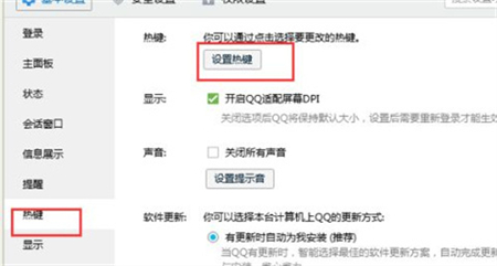 2、进入QQ设置页面后,在左侧点热键,如图所示: