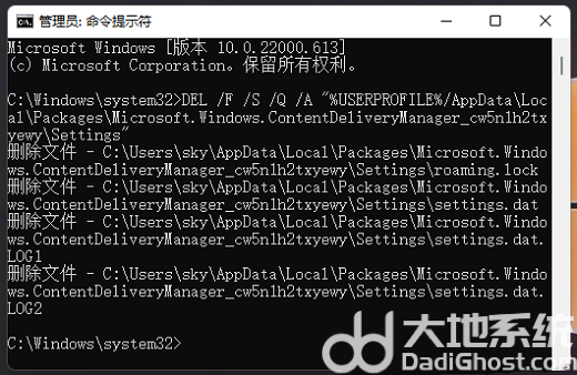 DEL /F /S /Q /A “%USERPROFILE%/AppData\Local\Packages\Microsoft.Windows.ContentDeliveryManager_cw5n1h2txyewy\Settings”