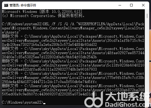 DEL /F /S /Q /A “%USERPROFILE%/AppData\Local\Packages\Microsoft.Windows.ContentDeliveryManager_cw5n1h2txyewy\LocalState\Assets”