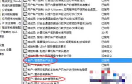 4、找到“账户:管理员状态”,可以看见状态为“已禁用”,我们需要的是将它开启。