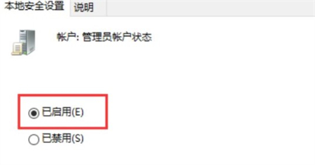 6、在“账户:管理员状态”属性中,将以启用选中即可。