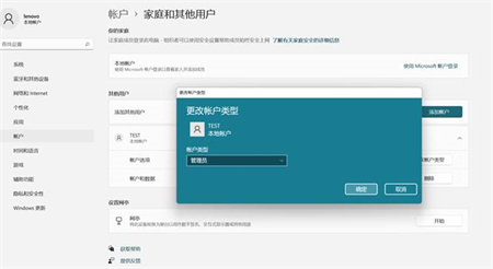 2.添加完成,更改账户类型,改成管理员,点确定。