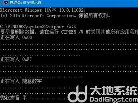 2、在打开的管理员命令提示符中输入cipher /w:C命令进行回车。