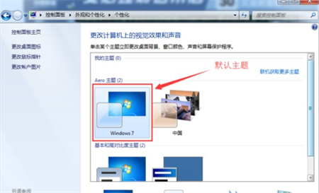 2.在打开个性化主题界面的时候,当win7系统安装完成以后,默认的主题是Aero主题下的Windows7主题。