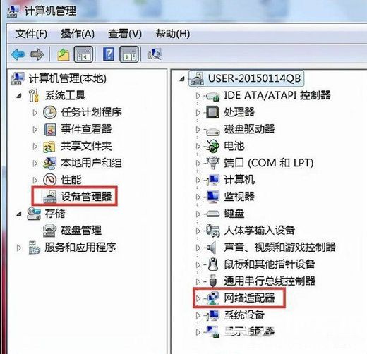 2、找到“网络适配器“并点击它。