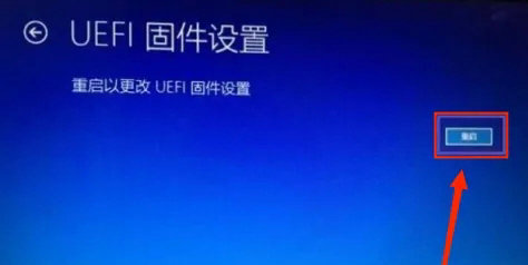 5、按方向键找到UEFI固件设置后点击回车进入,在右下角点击按钮按回车键即可重启