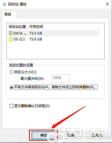 2、在打开界面的【选定位置的设置】下方选择【不将文件移入回收站中。移除文件后立即将其删除】选项。