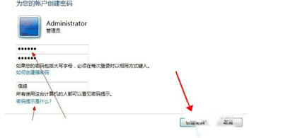 4.在密码设置框中,输入准备的系统开机密码。密码提示可随意设置,不设置也行。 设置完成点击“创建密码”。即可创建成功