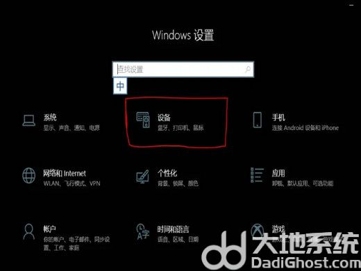 3、接着就会弹出一个会话框,即进入到win10 设置页面,找到“设备”选项,并点击。