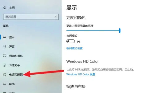 3、点击电源和睡眠,点击左侧的【电源和睡眠】