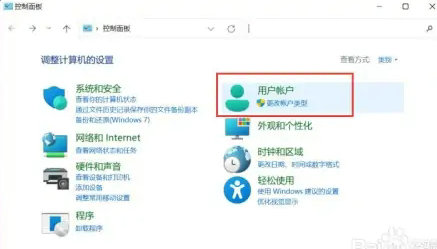 2、在控制面板中点击“用户账户”,进入后再继续点击“用户账户”