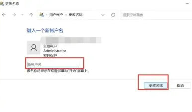 4、在键入一个新账号名页面中输入需要更改的用户名,并点击右下方的“更改名称”即可完成
