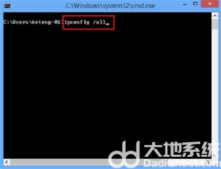 2.电脑会打开对应的界面,直接输入“ipconfig /all”后回车。