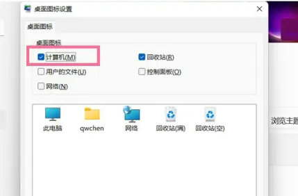3、在桌面图标下方勾选【计算机】即可,计算机在桌面显示的图标就是“我的电脑”啦