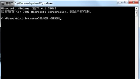 第二步、进去之后,在命令提示符输入“ SLMGR -REARM ”,按回车键,如下图所示: