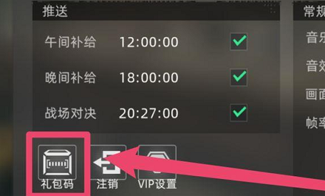 2、在个人设置界面可以看到下方的礼包码按钮,点击进入礼包码兑换界面