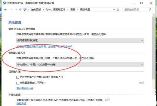 很多win10用户都有自己习惯用的输入法,但是每次手动切换又很麻烦,如果想要把自己喜欢用的输入法设置成默认输入法,应该怎么设置呢?操作很简单,先打开控制面板,点击“时钟、语言和区域”下方的更换输入法,之后点击高级设置,在打开界面中找到替代默认输入法,在展开项中选择你想要的输入法即可。