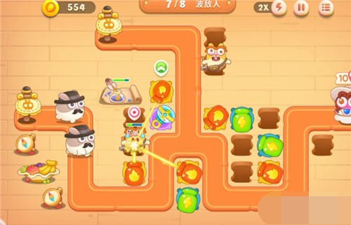 3.与此同时上面的跑道会出现速度很快的兔子,这时我们需要在左边摆放一个减速炮台,确保兔子不会太快经过漏掉敌人。