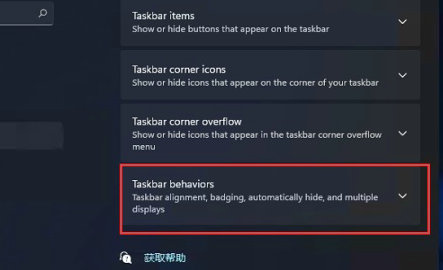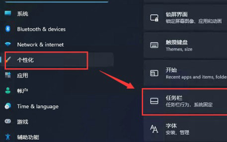 2、选择“任务栏”,在其中打开“任务栏行为”