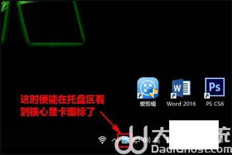 5、启用之后,就能在系统托盘区看到英特尔核芯显卡的图标了。