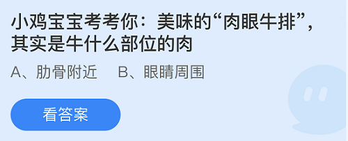 1、小鸡宝宝考考你美味的肉眼牛排其实是牛什么部位的肉?