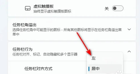 我们windows11电脑的任务栏默认位置是居中的,那要怎么调制才能在左下角呢,首先我们打开windows11的任务栏设置,打开任务栏行为,点击居中选项,将居中选项换成左选项,最后点击应用即可,这样就能把windows11的任务栏调制左下角,后面想要放中间,就选择居中选项哦。