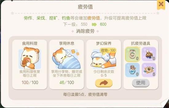 5.然后就是使用料理了,食用料理每天可以恢复一百的疲劳值,但是只有一次机会。