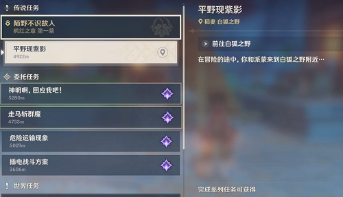 1、陌野不识故人,平野现紫影,前往白狐之野,在冒险的途中,和派蒙来到白狐之野附近,跟随目标追踪,前往指定地点;击退袭击者,击败突然出现的武士,似乎是把我们认成了万叶。果然我和万叶长的很有夫妻相(大雾)去告诉万叶
