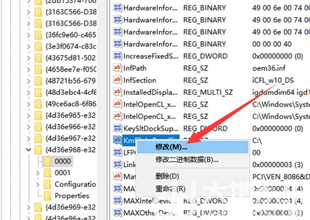 3、然后找到KMD_EnableBrightnessInterface2文件,右击选择修改。如果没有找到就新建一个Word值,将其名称改为这个文件名。