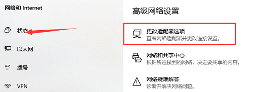 2.在进入的页面,选择【更改适配器】选项。