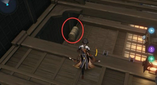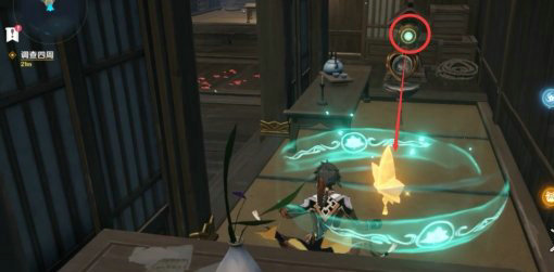 4、将机关切换到训练廊,根据提示需要找到两个【流韵御守】来激活后面的门,第一个御守就在我们的右手边