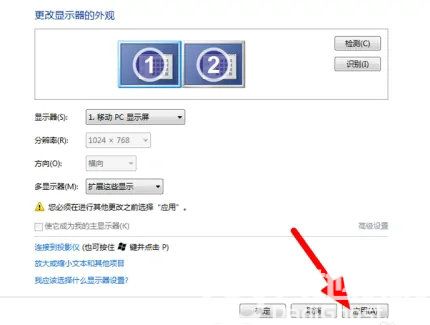 2、在屏幕分辨率页面,设置为扩展这些显示