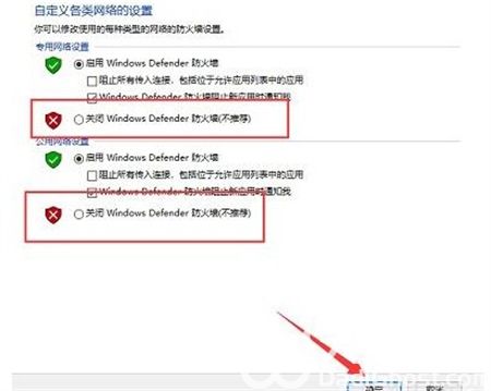 5、这时候就可以根据需要选择“关闭windows 防火墙(不推荐)”了,点击确定即可。