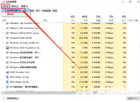 3、之后我们点击任务管理器页面左上角的“文件”,选择“运行新任务”选项。