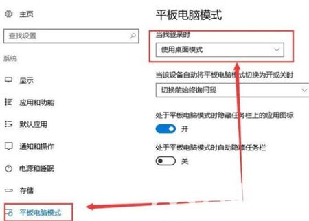 3、然后在【平板模式】中,将我们的设置调整为桌面就行了。