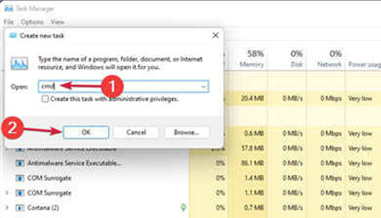 4、输入cmd并按回车或单击OK。