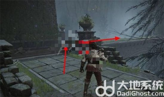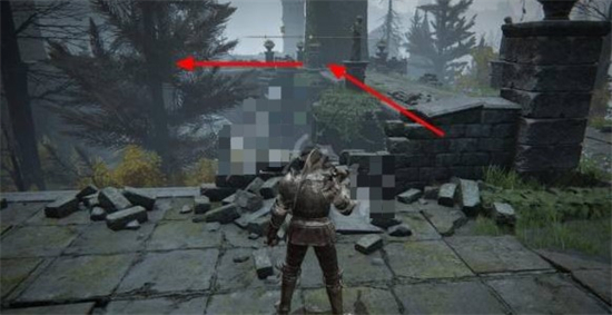 离开赐福后沿着城墙前进,在城墙中段处左转。
