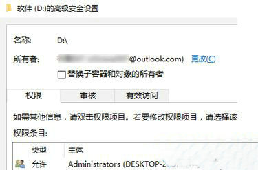 6、你会发现你的帐户已经被添加到“权限条目”;
