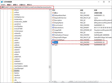 路径:HKEY_LOCAL_MACHINE\SYSTEM\CurrentControlSet\Services\UsoSvc