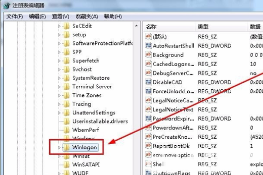 3、我们找到Winlogon这个文件夹。这个文件夹在LOCAL_MACHINE下面的SOFTWARE,再是Microsoft,再是Windows NT,再是CurrentVersion,然再就是Winlogon了,找的时候要有耐心,还要注意不要找错了。