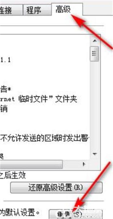 4、此时点击顶部的“高级”,点击下面出现的“重置”按钮。