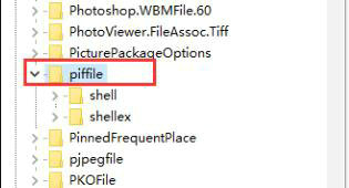 5、接着回到注册表,找到“HKEY_CLASSES_ROOT”下的“piffile”文件夹。