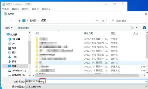 4、点击文件,另存为,弹出对话框,将扩展名修改为reg,点击保存。