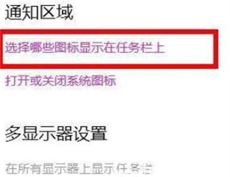 3、然后你可以看到下拉后的通知区,选择“在任务栏上显示哪些图标”。