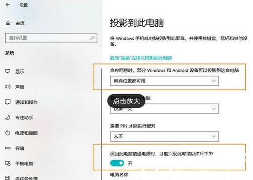 如果一切无误,此时你的手机应该可以正常连接电脑了(前提是手机和电脑网卡都要支持Micracast),如果还是不行,就要再次检查“设置”→“系统”→“投影到此电脑”里的选项是否被关闭。其中,第一项和最后一项必须要保持开启状态,接下来通过手机连接,就能在右下角看到连接提醒。