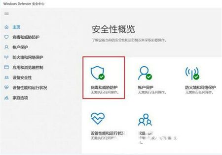 3、打开进入【Windows Defender安全中心】,然后点击【病毒和威胁防护】