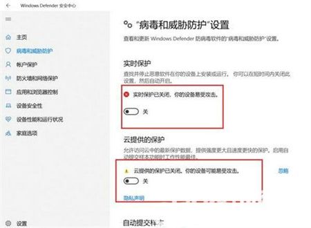4、点击【病毒和威胁防护】设置,将【实时保护】以及【云提供的保护】开关都关闭即可